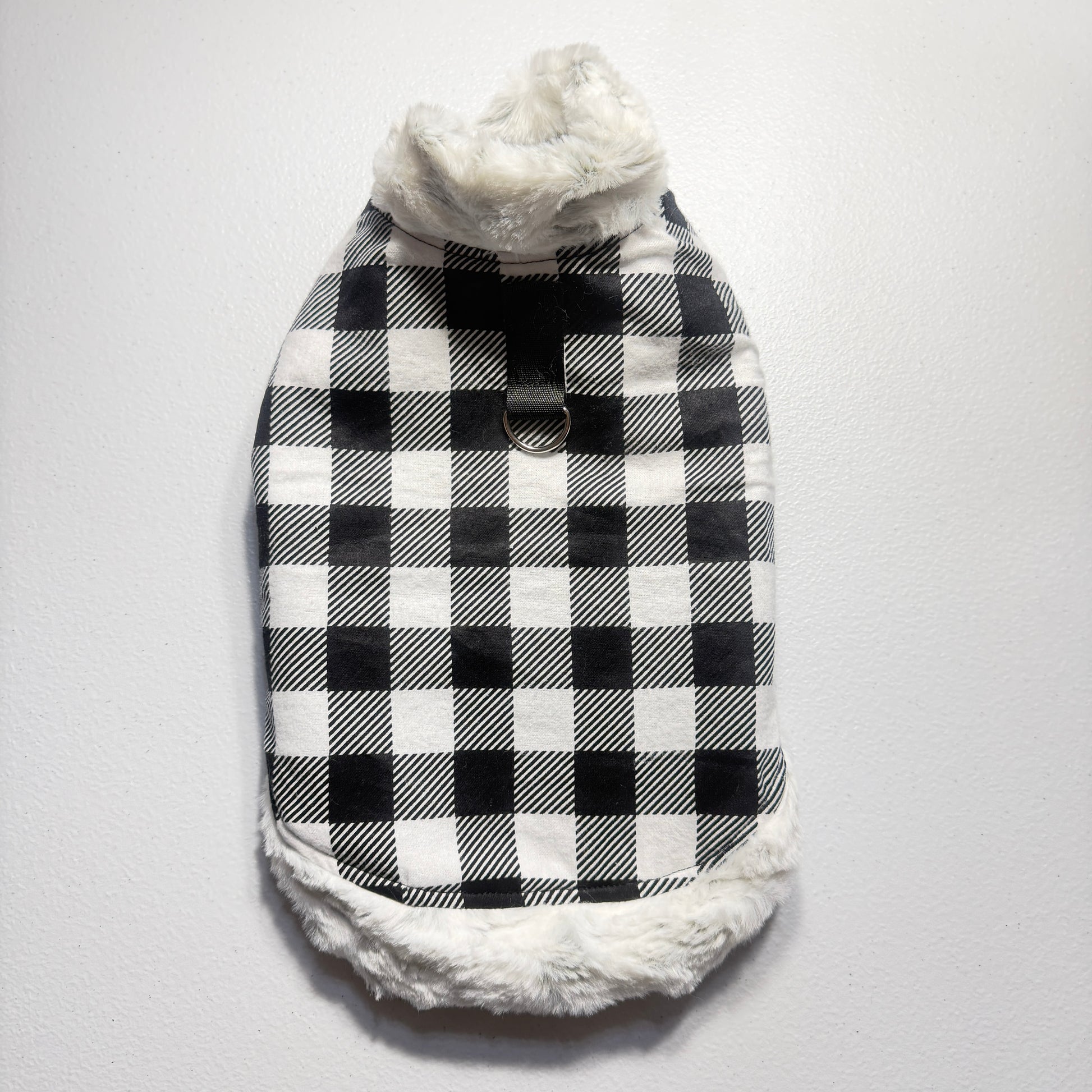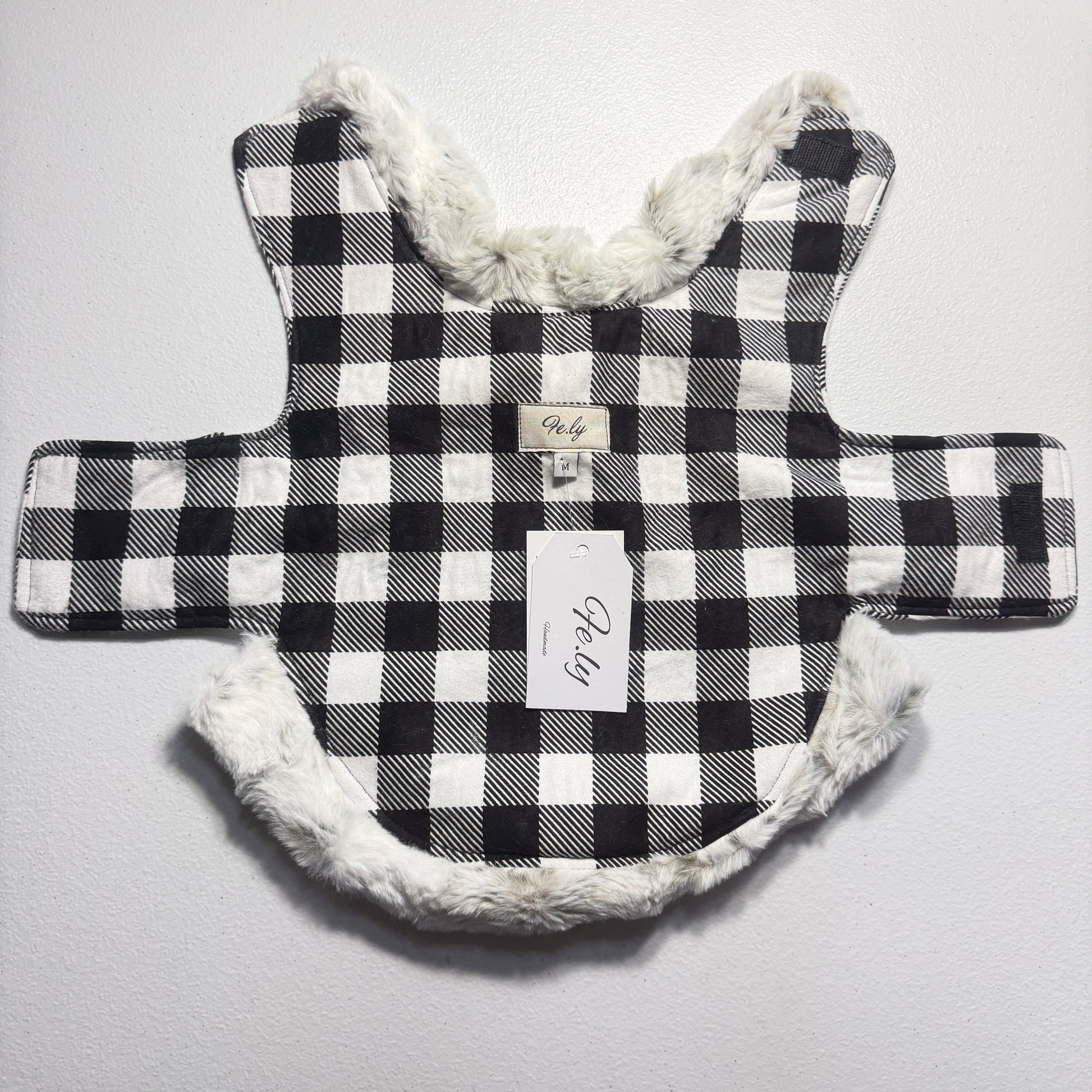 Give your pup the perfect mix of warmth, comfort, and style with this buffalo plaid dog coat, designed for medium dogs. Made with a soft black-and-white checkered fabric and fully lined, this jacket keeps your pet warm during chilly walks while looking adorable in photos.