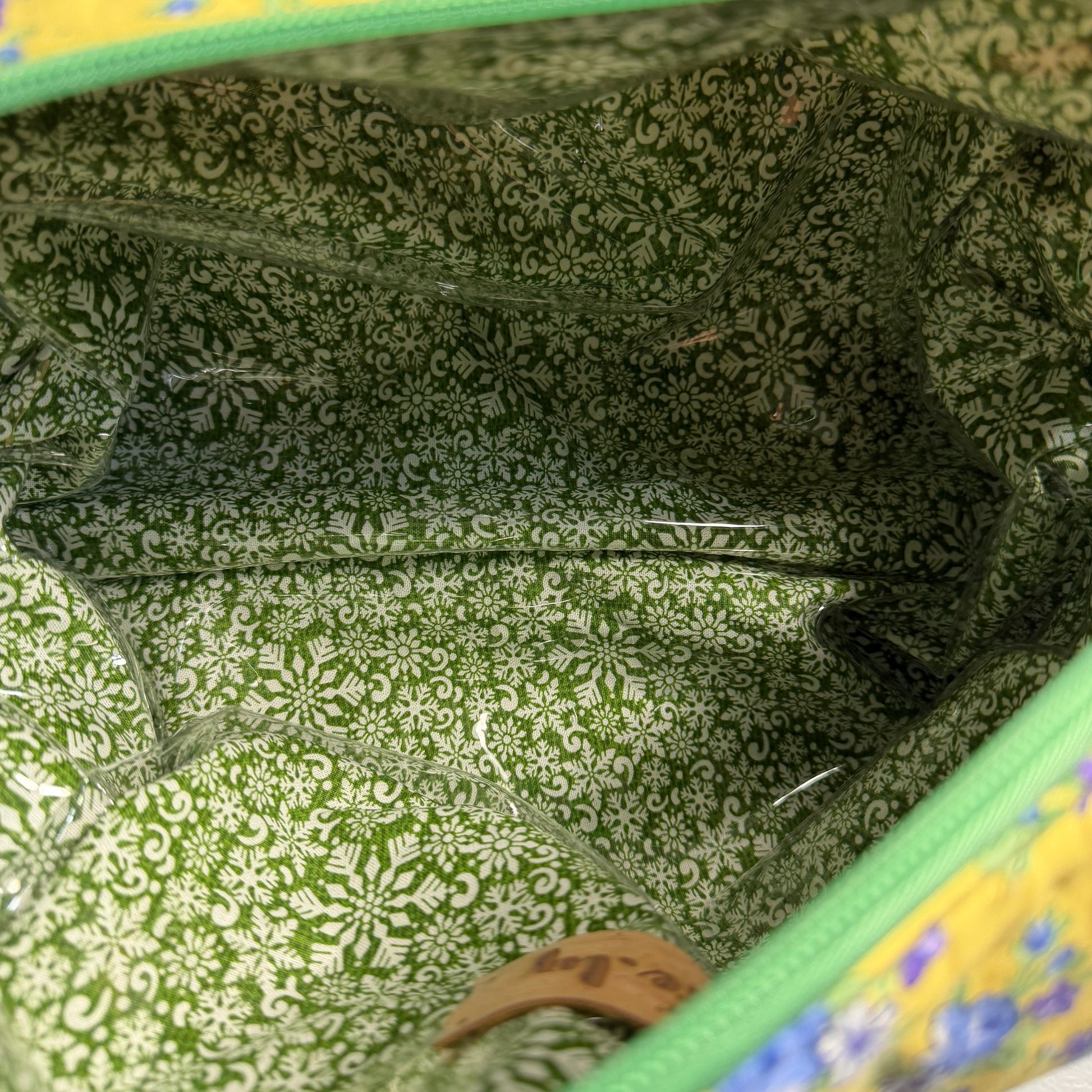 Carry your beauty essentials in style with this Fe.ly Handmade Waterproof Makeup Bag, crafted with love and attention to detail. This chic cosmetic pouch features a vibrant yellow floral top paired with a green patterned base, accented with a touch of delicate lace trim for an elegant, feminine finish.